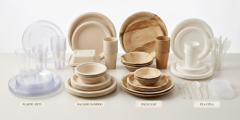 In procurement, the material of disposable tableware directly affects unit cost, supply stability, and usage limitations.
