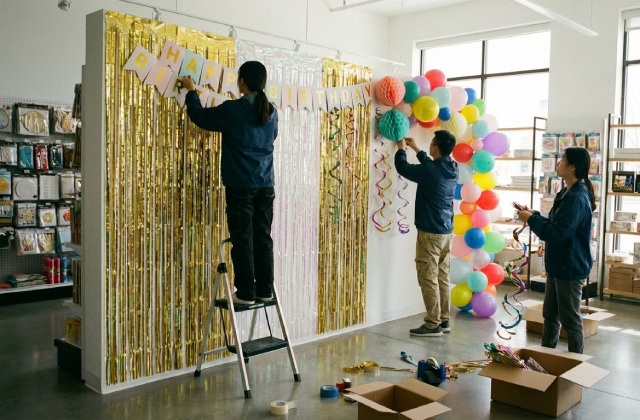 Your go-to source for vibrant bulk party decorations, from shimmering fringe curtains to custom banners, designed to help you create high-impact backdrops for every professional celebration.